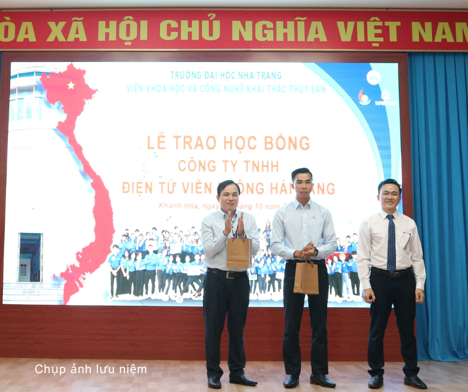 Tại buổi lễ, Công ty TNHH Điện Tử Viễn Thông Hải Đăng đã trao học bổng cho 05 sinh viên ngành Khai thác thuỷ sản, Khoa học thuỷ sản năm học 2023-2024 (các khoá 62, 64, 65) với tổng số tiền Học bổng tài trợ lên đến 75.280.000 đồng.
